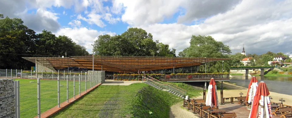 ● Inwestor: Gmina Uniejów ● Powierzchnia zabudowy: 685 m2 ● Powierzchnia użytkowa całkowita: 590 m2 ● Powierzchnia sali konsumcji: 310 m2 ● Powierzchnia tarasu: 344 m2 ● Kubatura: 3097 m3 ● Liczba kondygnacji: 1 nadziemna ● Projekt koncepcyjny: sierpień 2006 r. ● Projekt budowlany: grudzień 2006 r. ● Projekt wykonawczy: luty 2007 r. ● Budowa i odbiór : lipiec 2007 r. - czerwiec 2008 r. ● GPS: 51º 58' 18. 73" N / 18º 47' 24. 52" E