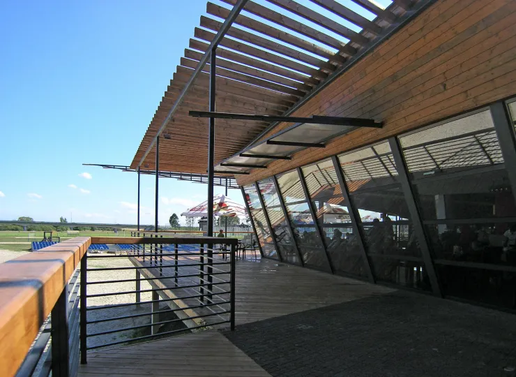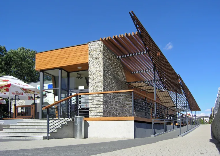 Budynek restauracji powstał jako II etap Kompleksu Basenowo - Termalnego w Uniejowie. Zbudowany został w bezpośrednim sąsiedztwie basenów ,,TERMY UNIEJÓW" i zespołu zamkowo - parkowego. Obiekt usytuowany jest na wale przeciwpowodziowym, w bezpośrednim sąsiedztwie rzeki Warty. Specjalna konstrukcja - 160 betonowych pali fundamentowych zapewnia budynkowi bezpieczeństwo na wypadek powodzi i przerwania wałów. Ze względu na walory historyczne, urbanistyczne i krajobrazowe obiekt był na etapie projektu wielokrotnie konsultowany z Wojewódzkim Urzędem Ochrony Zabytków w Łodzi. Budynek restauracji stanowi istotny element panoramy kompleksu miejsko - parkowo - zamkowego oglądanej od strony mostu. Wybrany został przez Łódzką Okręgowa Izbę Architektów jako jeden z 15 najlepszych obiektów architektonicznych zrealizowanych w Województwie Łódzkim w latach 2006 - 2009. Obecnie obiekt funkcjonuje pod nazwą ,,TERMALNA BISTRO & CAFE" ( http://www.termalna.com.pl/ )