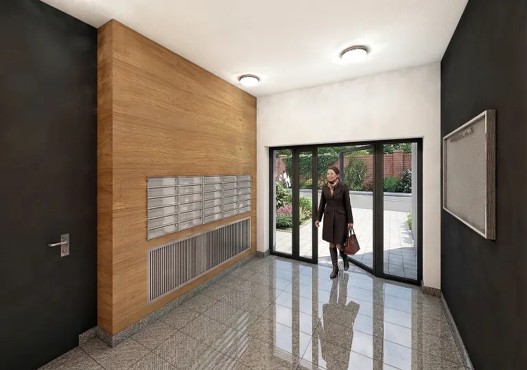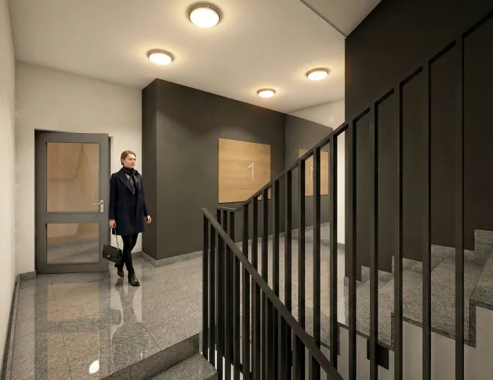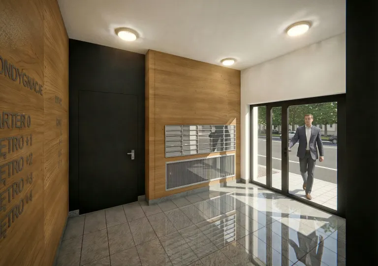 Poniżej prezentujemy wizualizacje ukazujące zaprojektowany zespół mieszkniowy oraz aranżację wnętrz części wspólnych budynków mieszkaniowych - holi wejściowych, kaltek schodowych i korytarzy. Inwestycję można także obejrzeć na dedykowanej stronie Inwestora: www.legionow66.pl