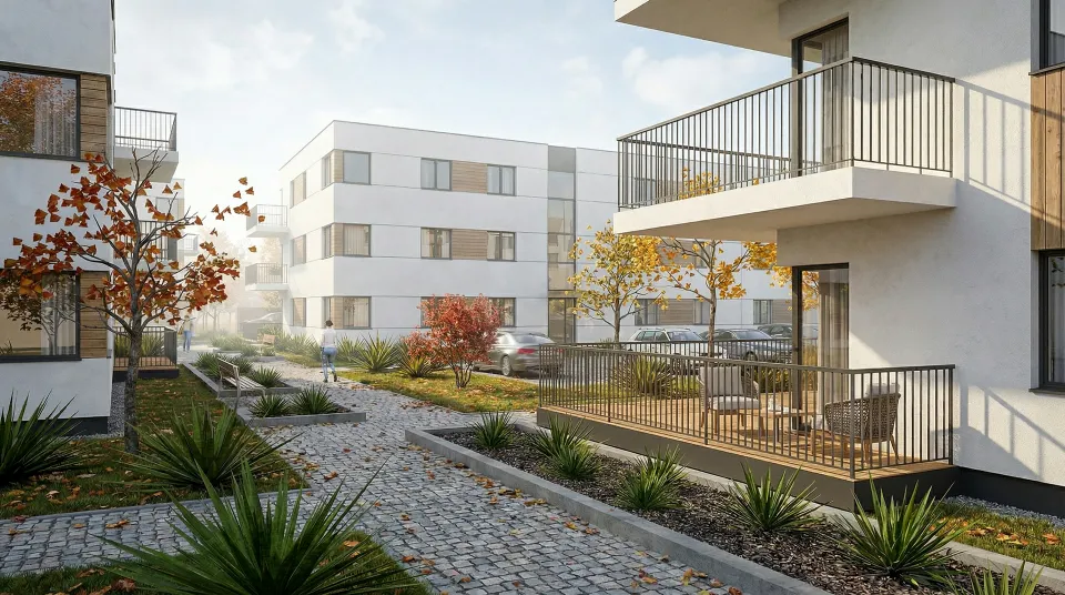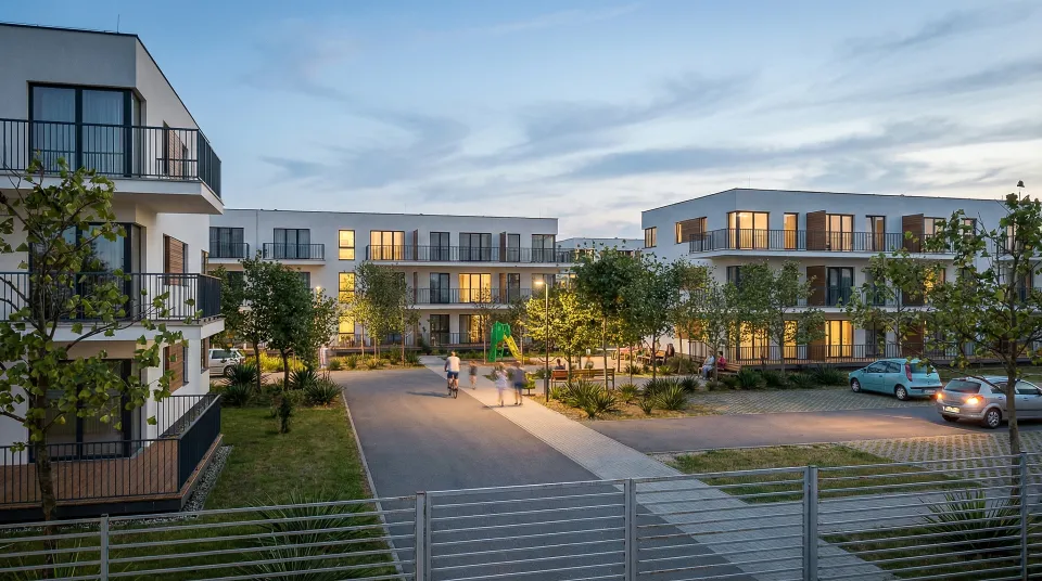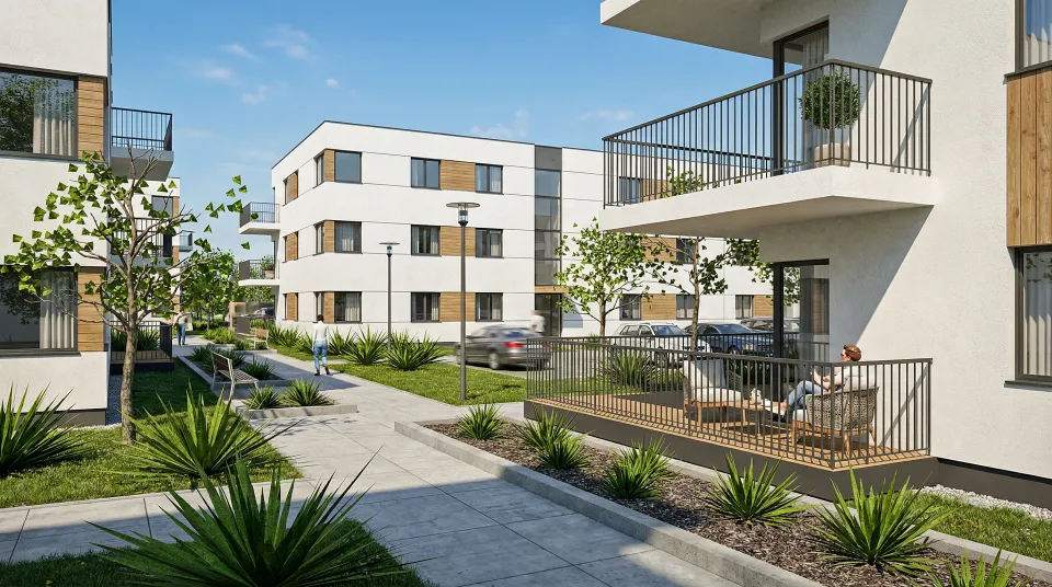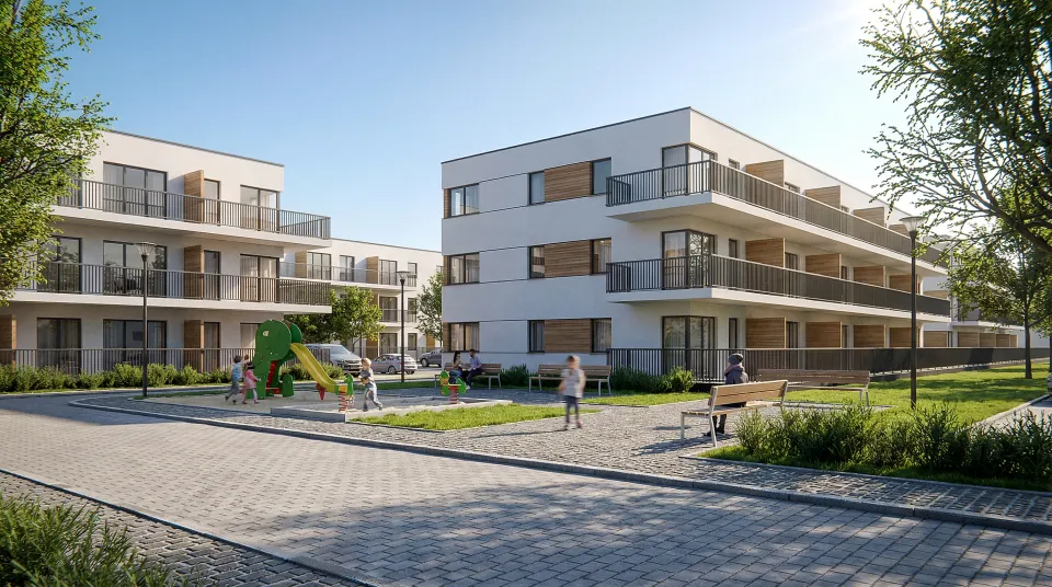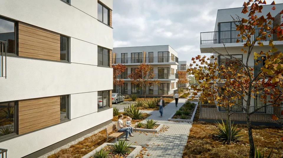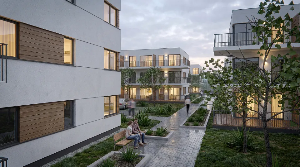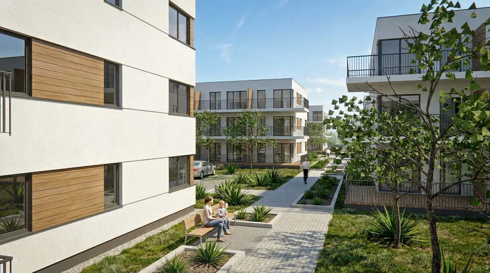Zespół zabudowy mieszkaniowej wielorodzinnej, zaprojektowany w południowej części Łodzi, w dzielnicy Górna. Kompleks złożony jest z 26 budynków mieszkalnych oraz z towarzyszących elementów zagospodarowania terenu: układu komunikacji kołowej i pieszej, naziemnych miejsc parkingowych, terenów zielonych, rekreacyjnych, placu zabaw. Każdy z budynków posiada 12 lokali mieszkalnych ( dwu-, trzy- i cztero-pokojowych ) ustytuowanych na trzech kondygnacjach. Budynki łączone są ze sobą w przyległości ( po dwa lub trzy ) i różnią się minimalnie od siebie w zależności od swego usytuowania ( występują w trzech wersjach ).